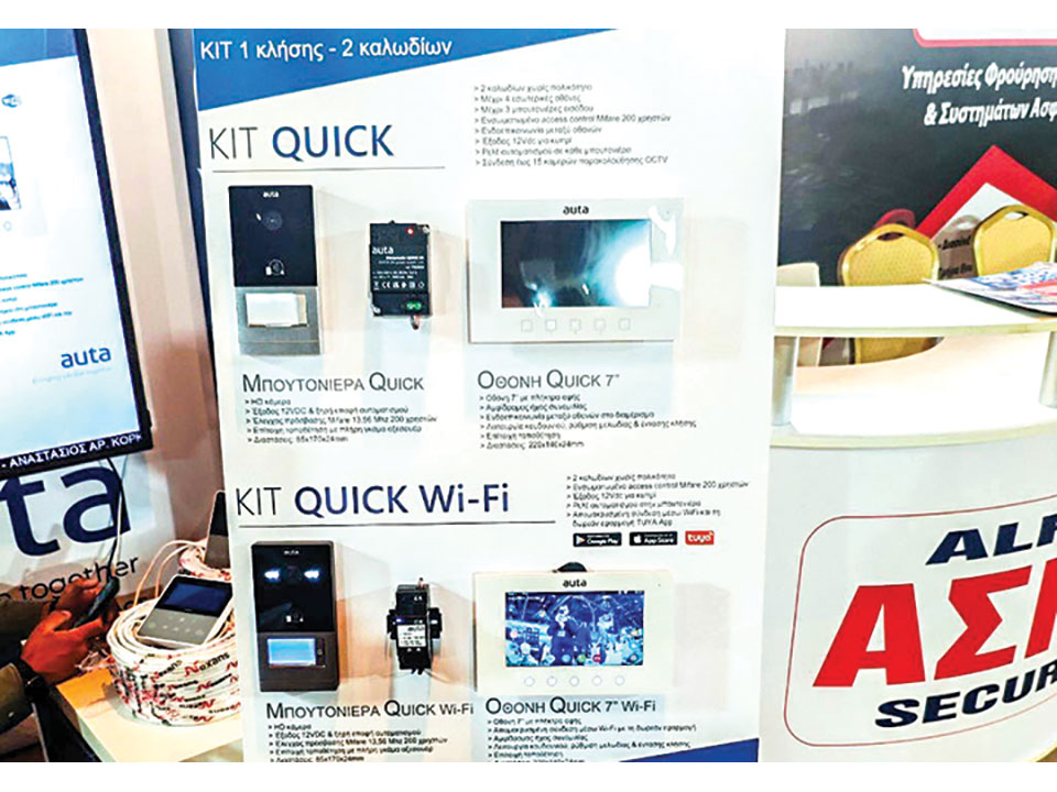 Επιπλέον, η Auta Hellas επέλεξε να παρουσιάσει στη φετινή Salonica Electronix 2025 τα KIT QUICK και KIT QUICK Wi-Fi, επίσης δύο καλωδίων, που είναι κατάλληλα για μονοκατοικίες ή γραφεία. Πρόκειται για μία πάρα πολύ εύκολη λύση για τον εγκαταστάτη, καθώς απαιτούν πολύ λίγο χρόνο για την εγκατάστασή τους χωρίς παραμετροποίηση.
