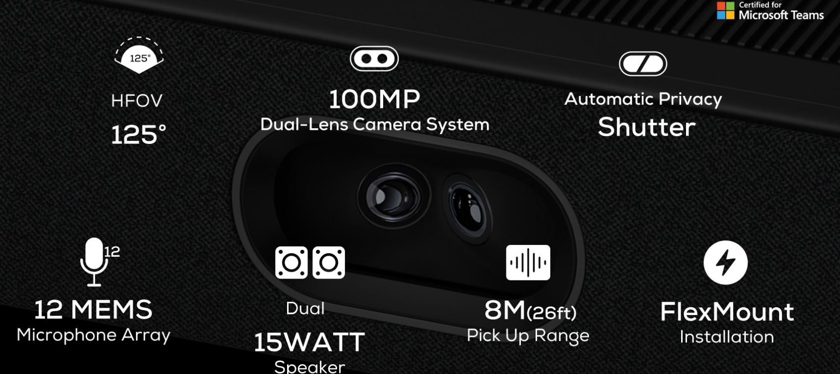 Η εικόνα αποτελεί βασικό στοιχείο της επικοινωνίας. Η συσκευή διαθέτει διπλό σύστημα καμερών συνολικής ανάλυσης 100 megapixel, το οποίο σε συνδυασμό με λειτουργίες τεχνητής νοημοσύνης προσαρμόζεται στη ροή της συζήτησης. Το σύστημα αναγνωρίζει τους ομιλητές και το σύνολο της ομάδας, διατηρώντας καθαρό και σωστά εστιασμένο κάδρο, χωρίς να απαιτείται καμία ρύθμιση από τον χρήστη.