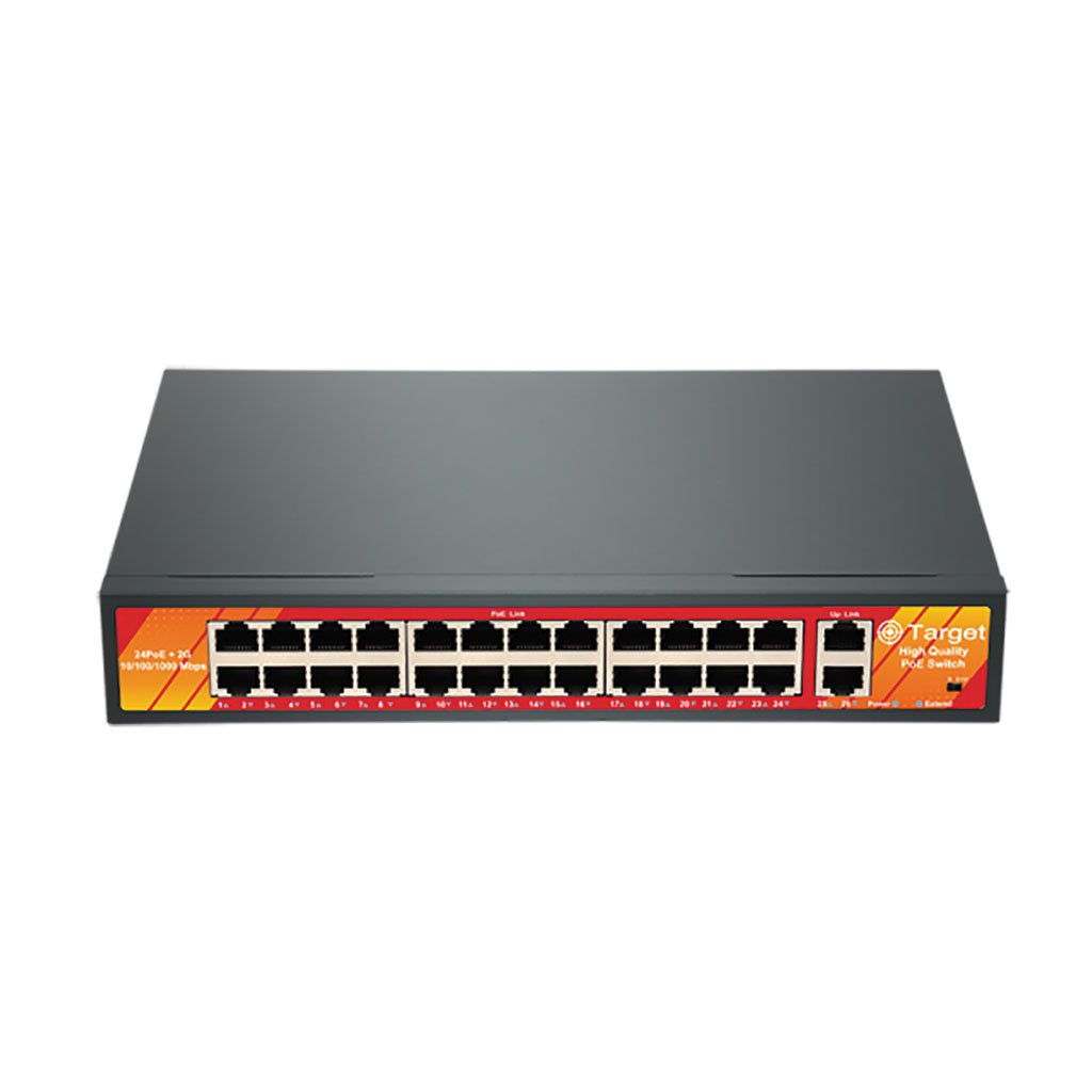 Η σειρά PοE switch BS-SWP της Target προσφέρει αξιόπιστες και ευέλικτες λύσεις δικτύωσης για εγκαταστάσεις ασφαλείας και όχι μόνο, που απαιτούν υψηλή απόδοση, ευκολία στη συνδεσιμότητα και υποστήριξη PoE τεχνολογίας. Όλα τα μοντέλα της σειράς διαθέτουν ενσωματωμένο τροφοδοτικό 48V και υποστηρίζουν μετάδοση δεδομένων και τροφοδοσία μέσω PoE θυρών έως και 250m, γεγονός που τα καθιστά ιδανικά για εγκαταστάσεις σε μεγάλους χώρους ή απομακρυσμένα σημεία. Το μοντέλο BS-SWP24/2Q προσφέρει 24x θύρες PoE 10/100/1000Mbps και 2x θύρες Uplink 1000Mbps, με ισχύ έως 30W ανά θύρα, και περιλαμβάνει μεταλλικές βάσεις για τοποθέτηση σε RACK 19”, καλύπτοντας πιο απαιτητικές ανάγκες.