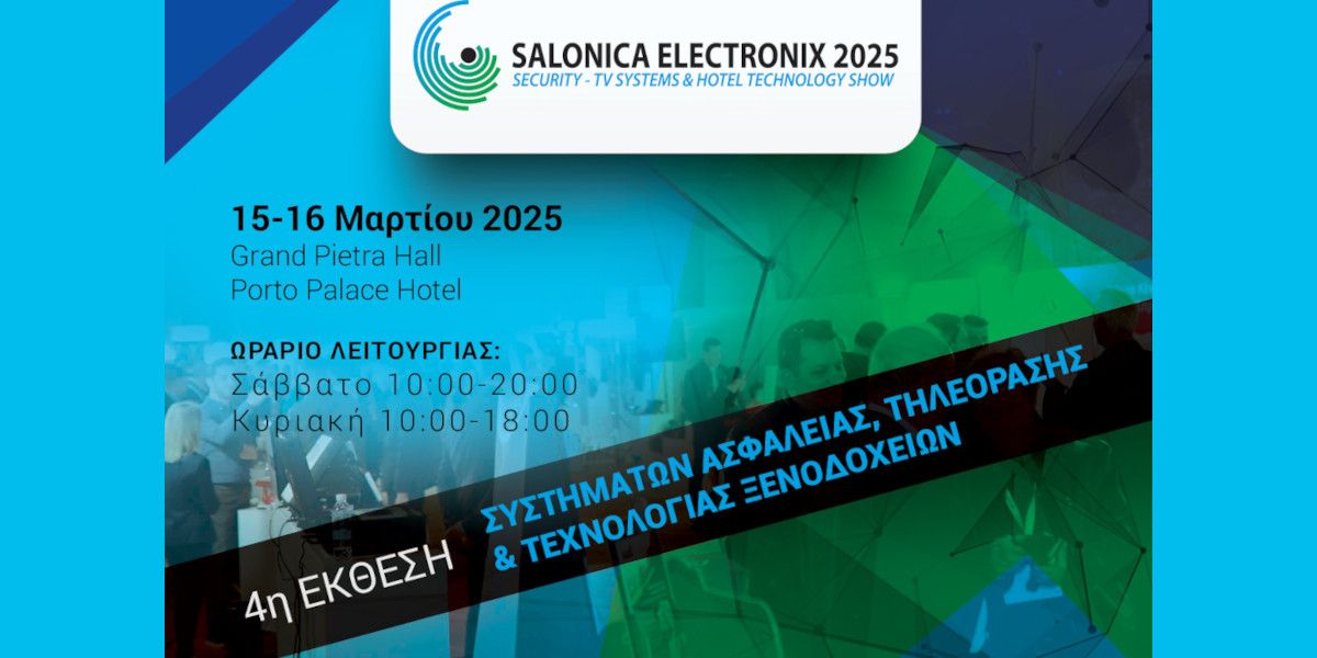 Λιγότερο από ένας μήνας για τη διεξαγωγή της Salonica Electronix 2025! Σάββατο 15 και Κυριακή 16 Μαρτίου 2025, στο Porto Palace Hotel Thessaloniki, η «γιορτή» που ετοιμάζει η Libra Press για τους επαγγελματίες των κλάδων συστημάτων ασφαλείας, τηλεόρασης, δικτύων και τεχνολογίας ξενοδοχείων θα σας μείνει αξέχαστη!