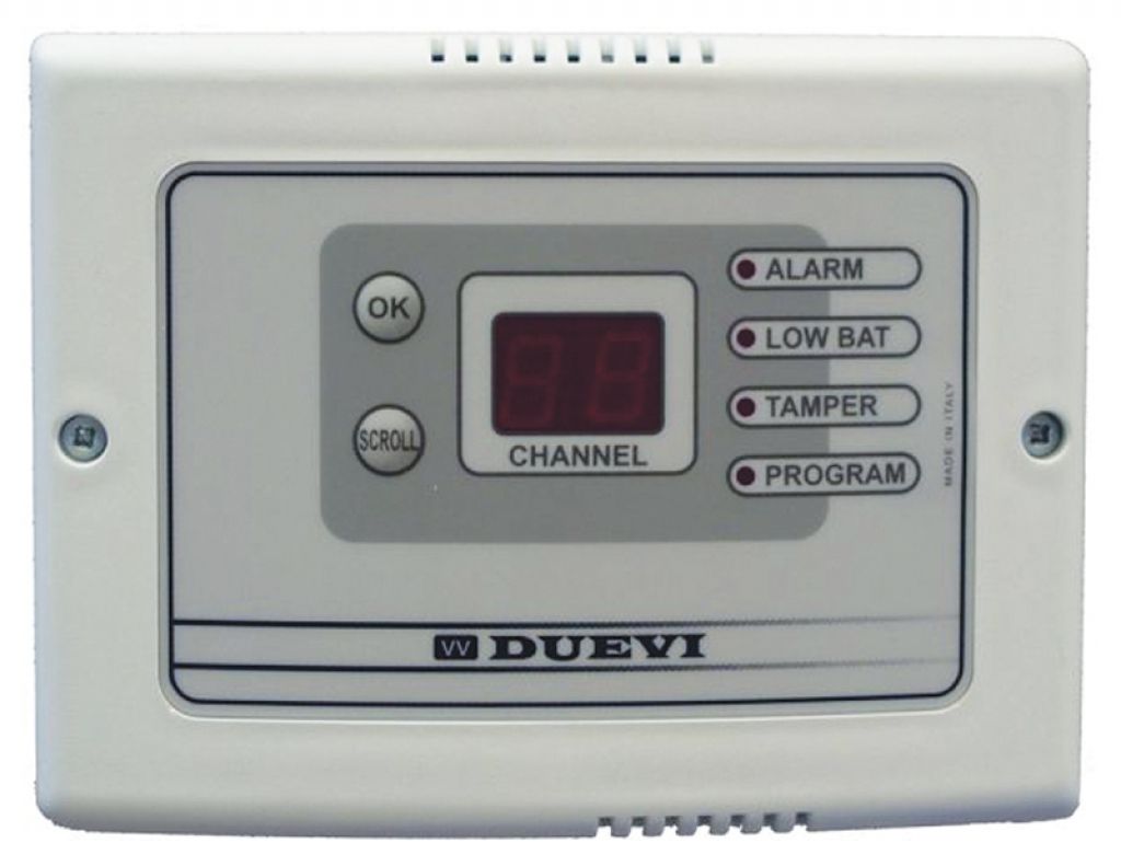 Ο ασύρματος δέκτης RX808 της Duevi υποστηρίζει 80 ζώνες και παρέχει 8 εξόδους ρελέ. Η μονάδα διαθέτει μνήμη συναγερμών και υποστηρίζει την εμφάνισή τους στην οθόνη του. Μέσω απομακρυσμένης διαχείρισης μπορεί να απενεργοποιηθεί μια έξοδος ρελέ. Υποστηρίζει anti-jamming και Tamper μέσω εξόδου ρελέ, όπως και ένδειξη χαμηλής μπαταρίας. Η συσκευή δέχεται μέχρι 9 τηλεκοντρόλ και λειτουργεί στη συχνότητα 433,92ΜΗz καλύπτοντας απόσταση 100 μέτρων σε ανοικτό πεδίο. Υποστηρίζει σήμα για το άνοιγμα πόρτας, καθυστέρηση χρόνου εισόδου/εξόδου και ολική ή μερική όπλιση. Για την όπλιση/αφόπλιση απαιτεί ένα καλώδιο από τον πίνακα.