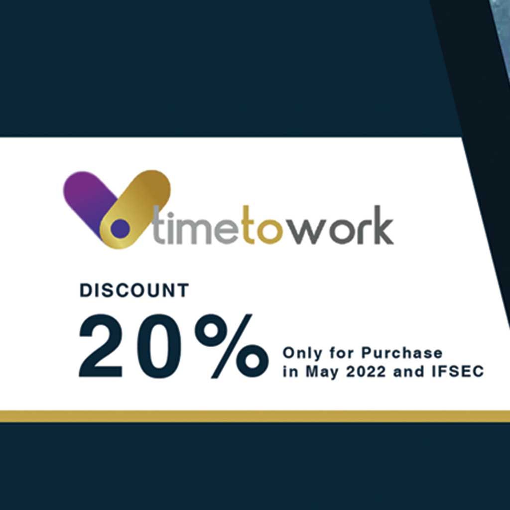 Το TimeToWork είναι ένα πρωτοποριακό, ελληνικό σύστημα ωρομέτρησης, που σε συνεργασία με τα συστήματα πρόσβασης της SOYAL, σας δίνει τη δυνατότητα να ενημερώνεστε πλήρως σχετικά με τον ακριβή αριθμό ωρών εργασίας των εργαζομένων σας. Σας παρέχει επίσης πληροφοριακά στοιχεία διαχείρισης των μη εργάσιμων ημερών (π.χ. αργίες, άδειες), καθώς και ένα ολοκληρωμένο αρχείο προσωπικού.
