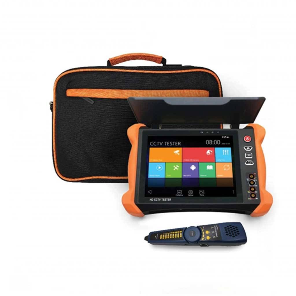 Λοιπά χαρακτηριστικά και παρελκόμενα: Φωτιζόμενα πλήκτρα, 1 είσοδος / 1 έξοδος BNC (loop), με αυτόματη ανίχνευση NTSC/PAL, 1 είσοδος / 1 έξοδος ήχου, με λειτουργία έγγραφης και αναπαραγωγής ήχου, 1 είσοδος / 1 έξοδος HDMI, με υποστήριξη σήματος μέχρι και 1920×1080, περιλαμβάνει κάρτα microSD 8GB, σύνδεση δικτυού LAN και WiFi (μπορεί να λειτουργήσει και σαν WiFi hot spot), έξοδος 12VDC 2A τροφοδοσίας κάμερας, έξοδος 5VDC 2Α σε υποδοχή USB, για χρήση ως φορτιστής κινητού, κ.λπ., θύρα RS485 για χειρισμό PTZ, με περισσότερα από 30 πρωτόκολλα, διαγνωστικά TVI μέχρι και 8MP, CVI μέχρι και 8MP, AHD μέχρι και 5MP, CVBS, με δυνατότητα χειρισμού OSD, λήψης στιγμιότυπου και εγγραφής βίντεο, λειτουργία μπαρογεννήτριας, για διαγνωστικό έλεγχο, μέτρηση Video peak, Sync & Chroma, έξοδος 48VDC PoE, για κατευθείαν τροφοδοσία IP κάμερας, με διαγνωστική λειτουργία, υποστήριξη καμερών IP, μέχρι και 4Κ, υποστήριξη ασύρματων καμερών WiFi, υποστήριξη H.265 / Η.264, ανίχνευση online IP συσκευών HIKVISION, DAHUA, ONVIF, διαγνωστικό καμερών IP ONVIF, ανίχνευση άγνωστης IP διεύθυνσης σε IP κάμερα, διαγνωστικά καλωδίων UTP/FTP, cable tracer (εύρεση καλωδίου), για καλώδια UTP/FTP, τηλεφωνικά και ομοαξονικά καλώδια με BNC, διαγνωστικές εφαρμογές δικτυού (Ping, IP scan, Port scan, Network test, Port flashing, DHCP server, Trace route, Link monitor), εφαρμογές διαχείρισης καμερών ONVIF, HIKVISION (iVMS-4500HD), DAHUA, κ.ά., υποστήριξη ψηφιακού zoom 4x, λειτουργία φακού, πληθώρα από άλλα βοηθητικά utilities, όπως RS485 data monitor, Chrome, web browser, Quick office, Calculator, νotepad, κ.λπ. και δυνατότητα εγκατάστασης εφαρμογών από το χρήστη, εύκολη αναβάθμιση εφαρμογών online, αυτονομία 10 ωρών, επαναφορτιζόμενη μπαταρία Li-Po 7.4V 5000mAh, τροφοδοτικό: 12VDC 2A, διαστάσεις: 255 x 160 x 46 χιλιοστά, βάρος: 950 γραμμάρια.