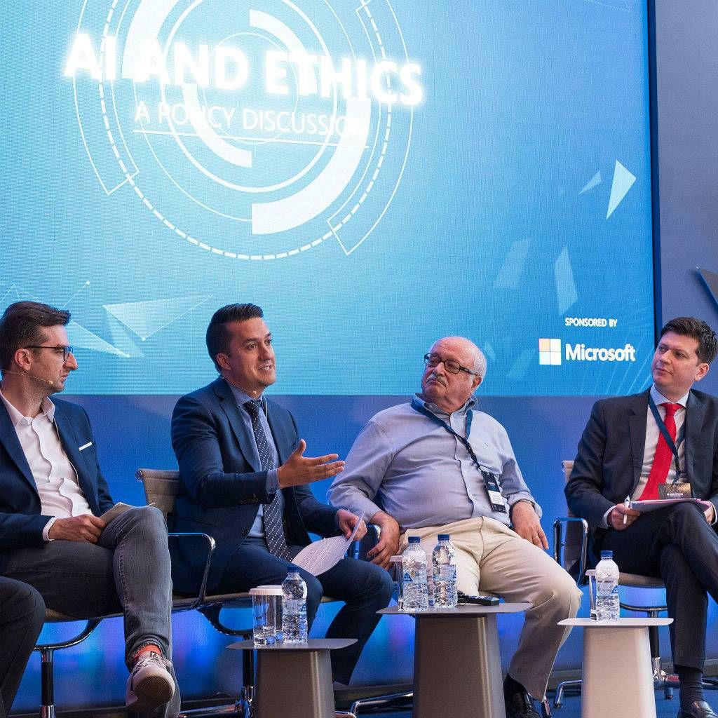 Με κεντρικό άξονα συζήτησης τα μεγάλα ηθικά ερωτήματα που εγείρει η ανάπτυξη της Τεχνητής Νοημοσύνης και την ανάγκη διαμόρφωσης ενός ρυθμιστικού πλαισίου, πραγματοποιήθηκε, την Τρίτη 11 Ιουνίου στο Ζάππειο ΜέγαροΜε κεντρικό άξονα συζήτησης τα μεγάλα ηθικά ερωτήματα που εγείρει η ανάπτυξη της Τεχνητής Νοημοσύνης και την ανάγκη διαμόρφωσης ενός ρυθμιστικού πλαισίου, πραγματοποιήθηκε, την Τρίτη 11 Ιουνίου στο Ζάππειο Μέγαρο, εκδήλωση του Ελληνο-Αμερικανικού Εμπορικού Επιμελητηρίου με θέμα “Artificial Intelligence & Ethics: A Policy Discussion”. Διακεκριμένα πρόσωπα από το χώρο της πολιτικής, της ακαδημαϊκής και της επιχειρηματικής κοινότητας, τίμησαν με την παρουσία τους την εκδήλωση συμμετέχοντας ως ομιλητές, αναπτύσσοντας ευαίσθητα ζητήματα ηθικής, πολιτικής, δικαιοσύνης και ασφάλειας σε ένα περιβάλλον τεχνητής νοημοσύνης. Η εκδήλωση πραγματοποιήθηκε με την υποστήριξη της Microsoft υπό την αιγίδα του Υπουργείου Ψηφιακής Πολιτικής, Τηλεπικοινωνιών και Ενημέρωσης. Συντονιστής της εκδήλωσης ήταν ο δημοσιογράφος Απόστολος Μαγγηριάδης.