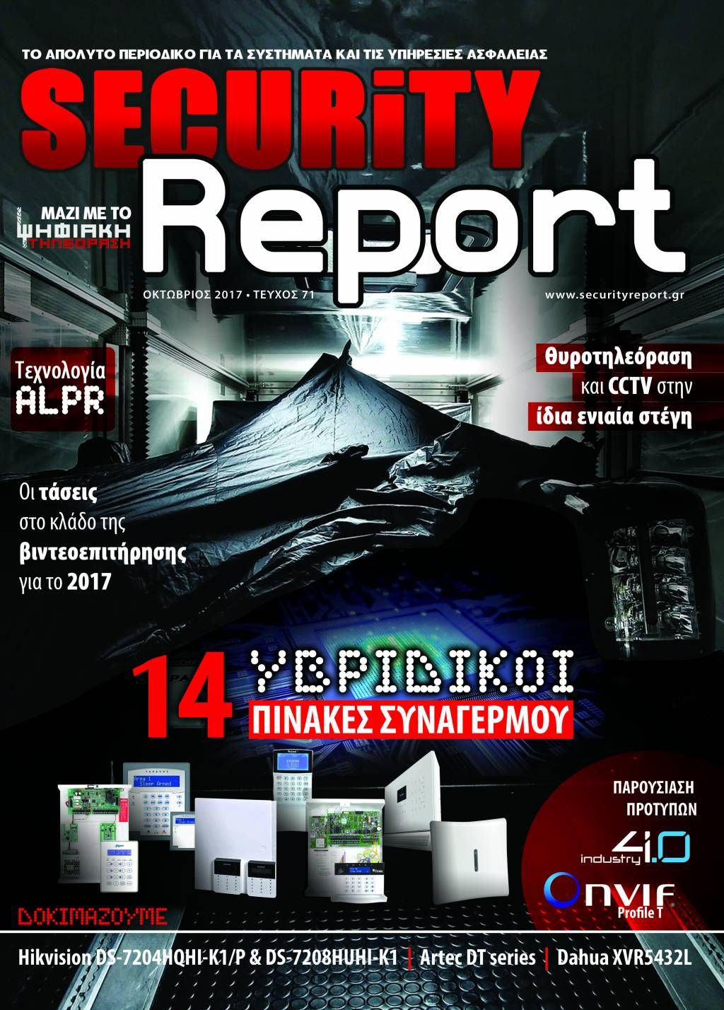 Για τις ανάγκες της παρουσίασης, είχαμε στη διάθεσή μας τις κάμερες της Hikvision DS-2CE56D8T-AVPIT3Z, DS-2CC12D9T-AIT3ZE, DS-2CE16H5T-IT5, και DS-2CC52H1T-FITS (εικόνα 10). H DS-2CE56D8T-AVPIT3Z είναι μια στιβαρή κάμερα dome εξωτερικού χώρου, με αντιβανδαλιστική προστασία, υπέρυθρο φωτισμό εμβέλειας 40m, motorized varifocal φακό auto focus, που είναι τηλεχειριζόμενος από το καταγραφικό, μέσω του καλωδίου μεταφοράς σήματος της κάμερας, τροφοδοσία 12VDC ή 24VAC και εξαιρετική ποιότητα εικόνας, χαρακτηριστικά που αναμένεται να κάνουν best seller τη σειρά D8T. H DS-2CC12D9T-AIT3ZE είναι μια κάμερα bullet εξωτερικού χώρου, που μας εντυπωσίασε με τις εξαιρετικές επιδόσεις της σε πολύ χαμηλό φωτισμό, την τροφοδοσία PoC και τα επιπλέον χαρακτηριστικά της σειράς D9T. H DS-2CE16H5T-IT5 είναι μια κάμερα bullet εξωτερικού χώρου, με σταθερό φακό 3.6mm και εμβέλεια υπέρυθρου φωτισμού 80m, η οποία ήταν ξεχωριστή για την υψηλή της ανάλυση 5MP. Τέτοιες αναλύσεις και ποιότητα εικόνας έχουμε συνηθίσει μόνο σε IP κάμερες. Τέλος, η DS-2CC52H1T-FITS είναι μια ειδική κάμερα Fisheye dome, με πανοραμική θέαση 360o, ανάλυση 5MP, υπέρυθρο φωτισμό εμβέλειας ως 10 – 20m και ενσωματωμένο μικρόφωνο, που τοποθετείται συνήθως σε οροφή. Το εντυπωσιακό είναι, ότι η κάμερα έχει αναλογική έξοδο TVI, ενώ τέτοιες λύσεις έχουμε δει μόνο σε IP κάμερες πολλαπλάσιου κόστους. Από το menu της κάμερας ή το πρόγραμμα παρακολούθησης iVMS-4200 δίνεται η δυνατότητα, εκτός από τη θέαση της πλήρους εικόνας, να κάνουμε de-warping με διαφορετικές οπτικές γωνίες στην παρακολούθηση του βίντεο, σαν να είχαμε εγκαταστήσει περισσότερες σταθερές κάμερες ή μια κάμερα ptz . Είναι μια άριστη και οικονομική λύση για καταστήματα, γραφεία, lobbies, αποθήκες, κ.λ.π.